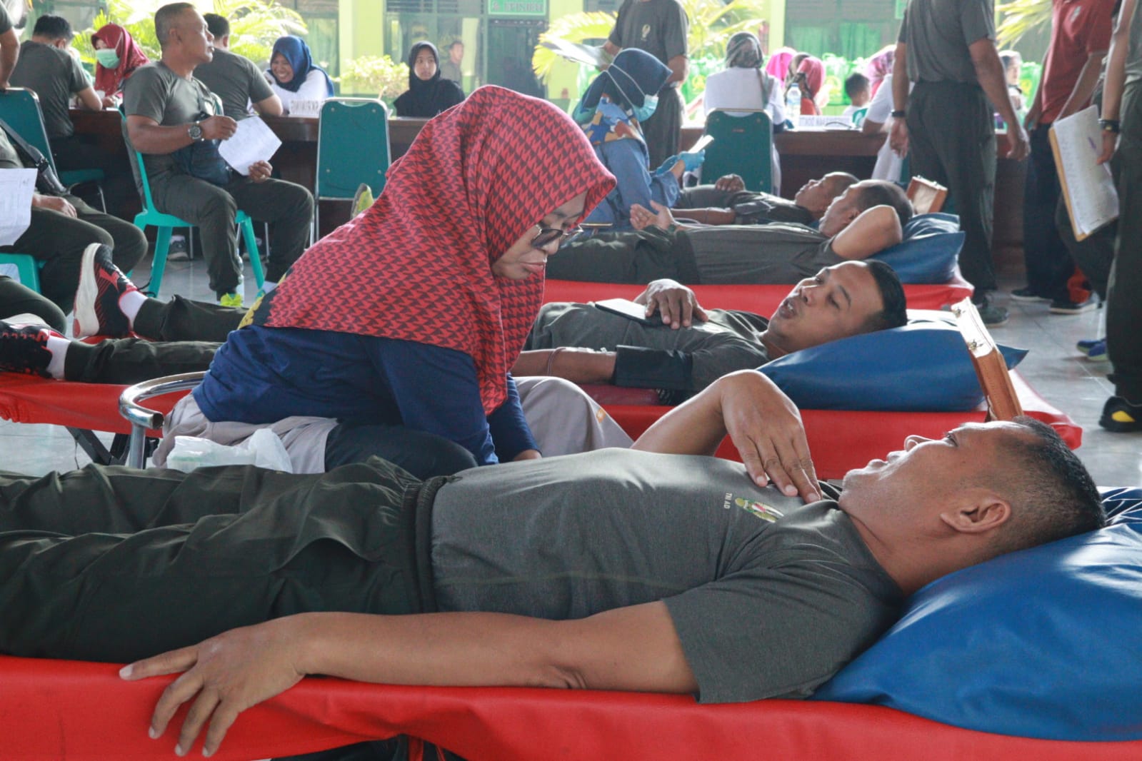 SRAGEN // Kupas Kriminal- Dalam rangka menyambut dan memeriahkan HUT TNI ke-78 dan HUT Kodam IV/Diponegoro Ke-73, Kodim 0725/Sragen menggelar serangkaian lomba lomba dan Kegiatan. Setelah menggelar lomba catur, Sepakbola U13 Dandim Cup Sragen di stadion Taruna, hari ini Kodim Sragen kembali menggelar donor darah, pembagian sembako dan pengobatan gratis. Minggu, 24/09/2023.
