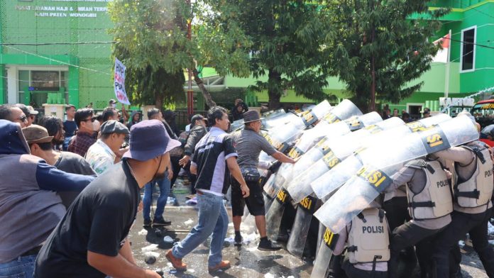 Kapolres Wonogiri, AKBP Andi Muhammad Indra Waspada Amirullah, S.H., S.I.K., M.M., M.Si., yang memimpin langsung pengamanan memberikan arahan agar anggota mengedepankan pendekatan secara persuasif dan humanis. Namun tindakan tegas terpaksa dilakukan aparat untuk memukul mundur massa yang semakin anarkis dengan mengerahkan tim negosiator Polwan, pasukan Dalmas Samapta Polres Wonogiri serta menurunkan kendaraan water canon.