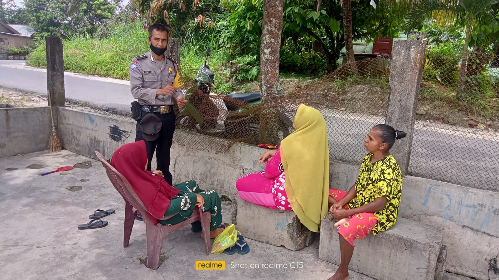 Bhabinkamtibmas Polres Labuhanbatu Aiptu H Endi Suwanto dan Aiptu Sumedi bersama Kepala Lingkungan Padang Bulan serta Personel KBN Padang Bulan, mensosialisasikan terkait dengan pembangunan Posko KBN di Padang Bulan.