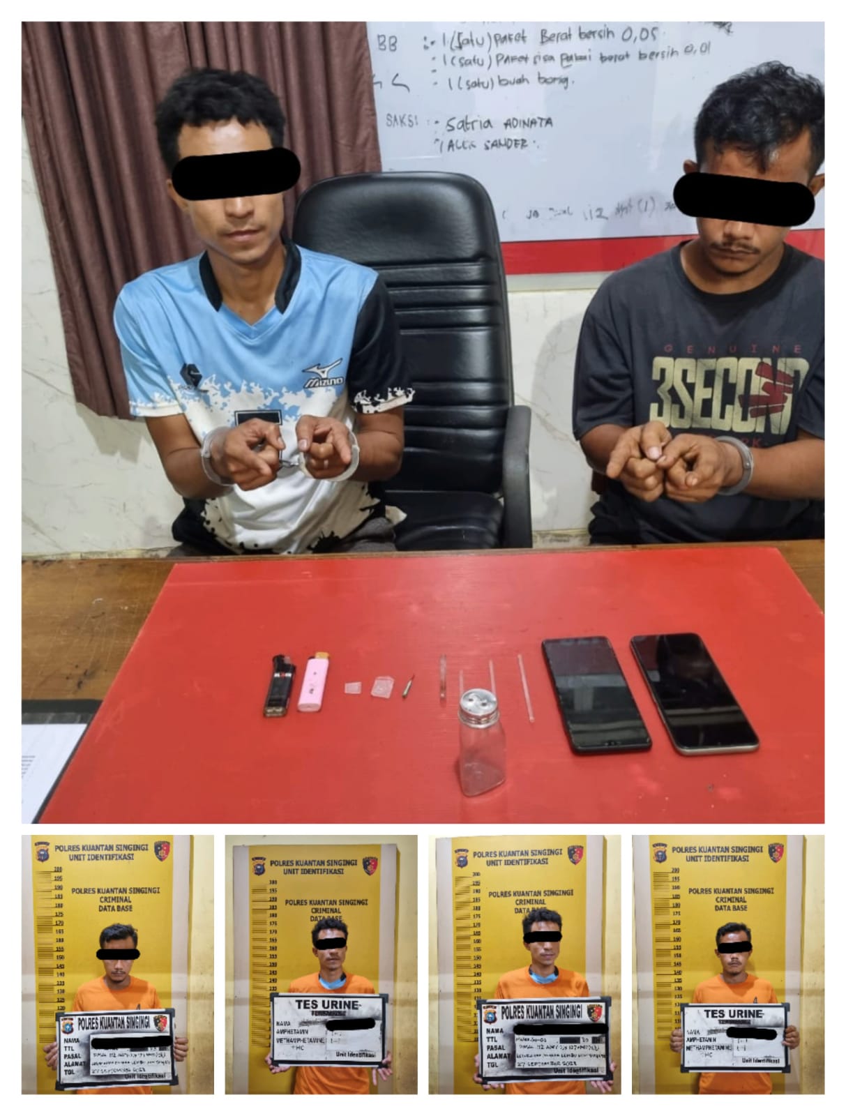 ” EE (40) dan JO (34) telah diamankan di Mapolres Kuansing dan dilakukan tes urine positif Amphetamin, kedua tersangka yang berperan sebagai pengguna dijerat dengan Pasal 112 ayat (1) Jo pasal 127 ayat (1) UU Nomor 35 Tahun 2009 tentang Narkotika dengan ancaman hukuman paling lama 12 tahun penjara,” ungkap IPTU Novris.