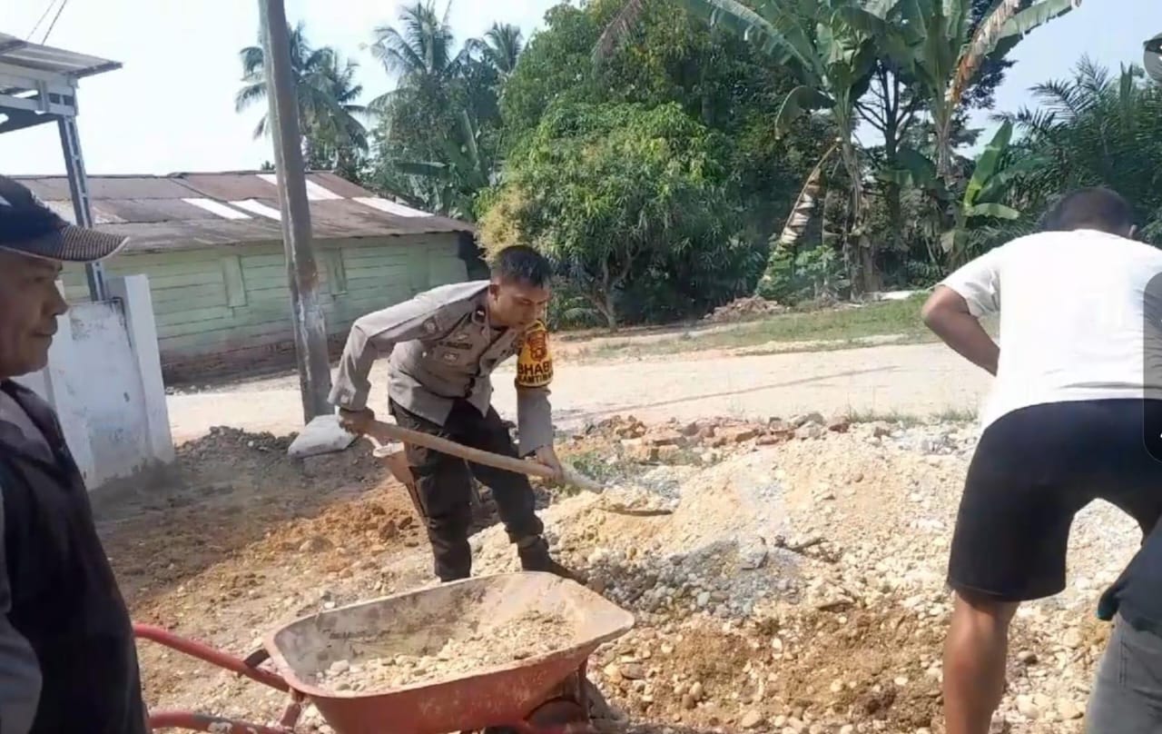 SAROLANGUN // Kupas Kriminal-Kegiatan Bhabinkamtibmas Polsek Pelawan Singkut Aipda Elias Mp ikut melaksanakan kegiatan gotong royong bersama Masyarakat desa Sungai Merah Kecamatan Pelawan Kabupaten Sarolangun pada Senin kemarin (25/9/2023).
