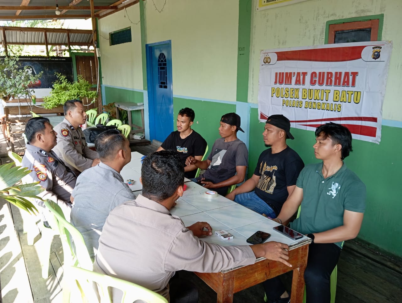 BENGKALIS // Kupas Kriminal- 20 Oktober 2023 – Polres Bengkalis melalui perwakilan Kapolsek Bukit Batu AKP RIFENDI menjalankan Giat Jumat Curahan Hati (Curhat) di Warung Kopi 786, Kecamatan Bukit Batu. Kegiatan ini bertujuan mempererat hubungan antara Polres Bengkalis dengan masyarakat, khususnya warga Desa Sei Selari.