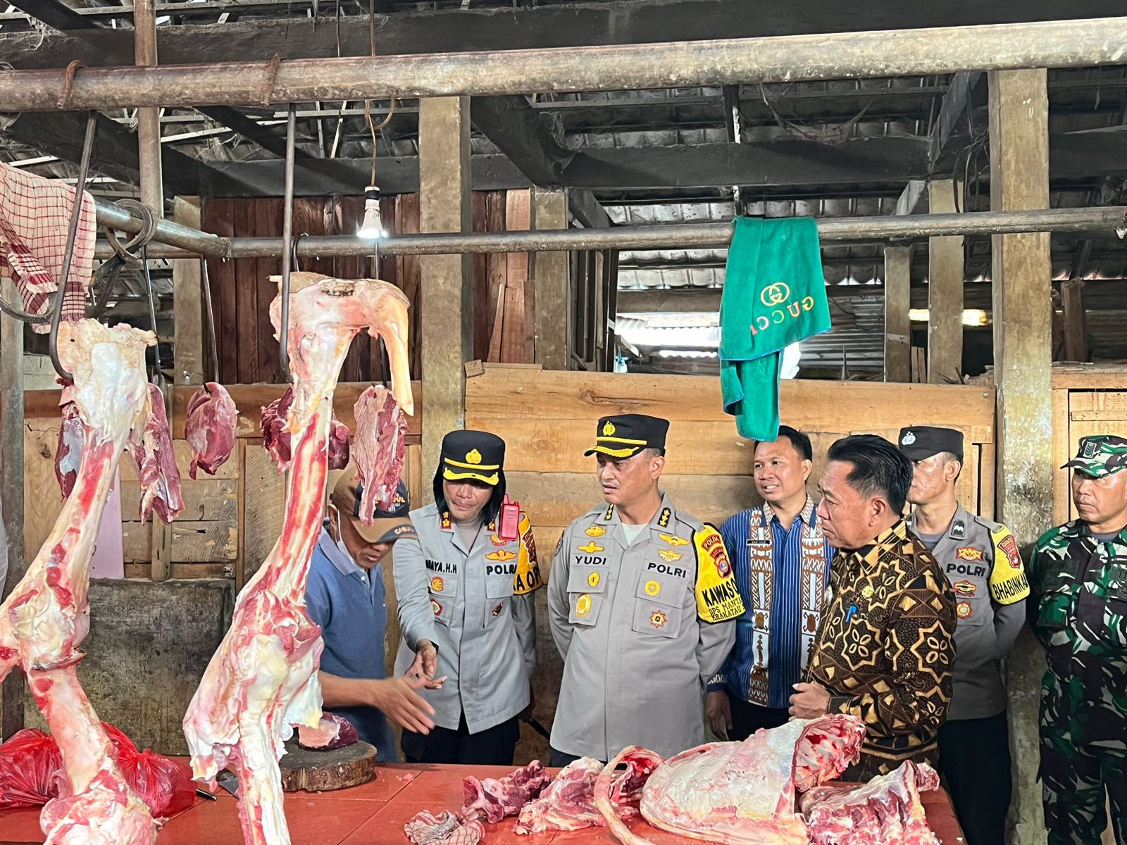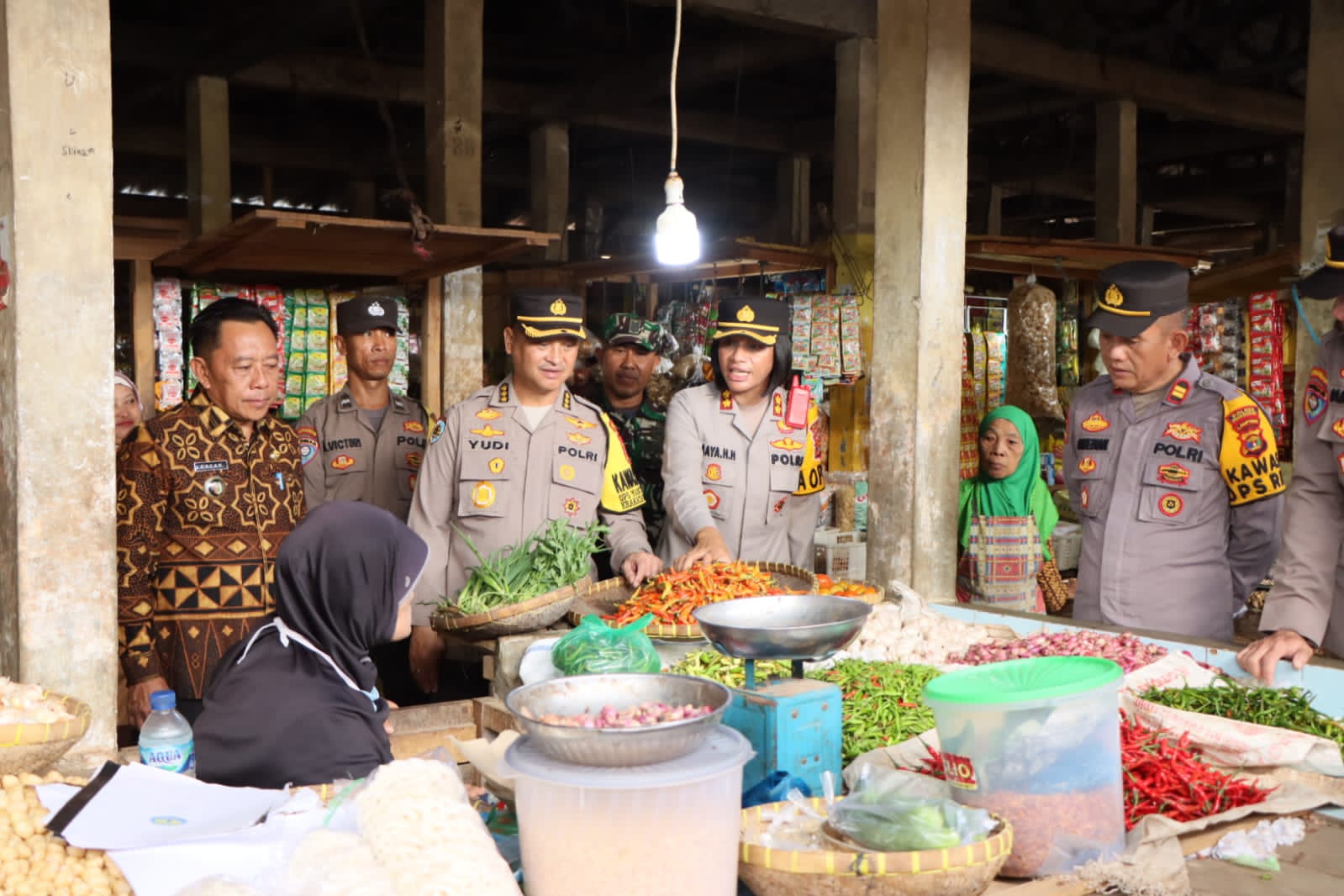 Kapolres Pesawaran AKBP Maya Henny Hitijahubessy, SH, S.IK, MM mendampingi Irwasda Polda Lampung Kombes pol Yudi Hermawan, SH, S.Ik, MH dan PJU Polda Lampung serta Kadis Perindag Kab. Pesawaran terjun langsung guna Monitoring Harga dan Ketersediaan Sembako, bumbu dapur dan daging di Pasar tradisional Gedong Tataan Kabupaten Pesawaran.