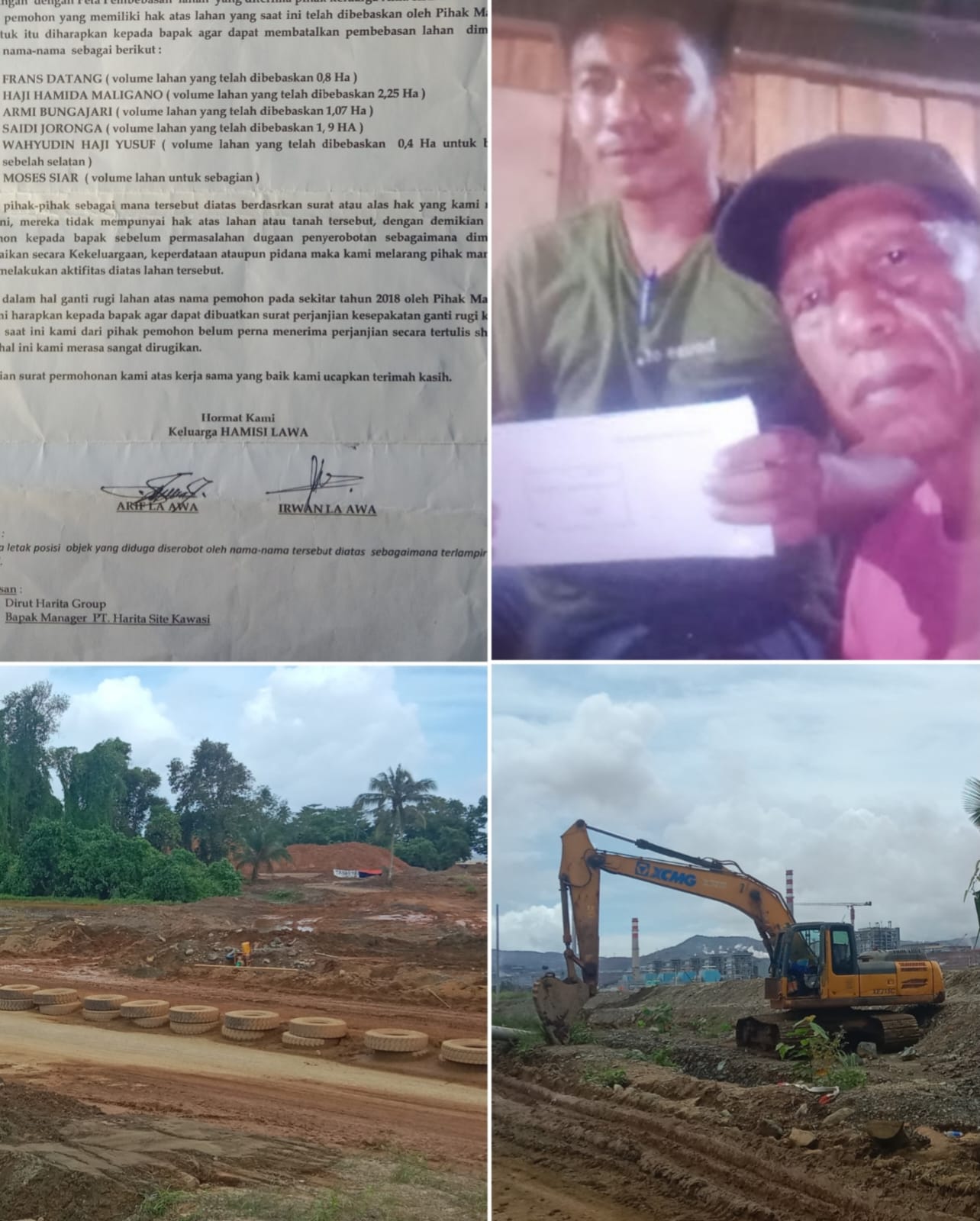 Arif dan Irwan kakak beradik ini kepada Media Kupas Kriminal.com, membenarkan bahwa sebelum di lakukan pembebasan lahan mereka seluas 15 hektar di Desa Kawasi, dan penggusuran tanaman mereka. Terlebih dulu di berikan salinan bukti surat hak kepemilikan tahun 1978 dan Somasi yang di terima langsung oleh LA PT. Harita Grup yakni Arifin Talaga, pada tanggal 11 desember 2022 lalu.