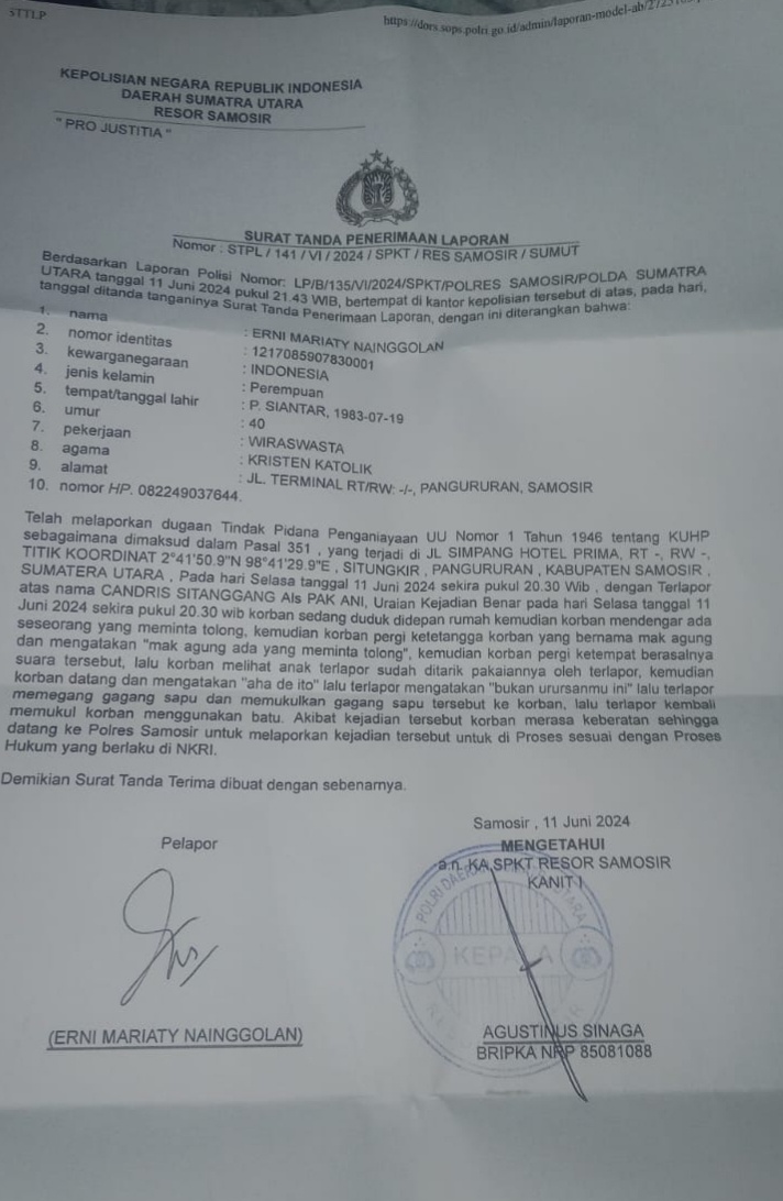 “Polres Samosir, diduga kuat berikan keterangan bohong kepada masyarakat terkait kasus dugaan penganiayaan yang dilakukan terlapor Canris Sitanggang terhadap seorang wanita berinisial EM.