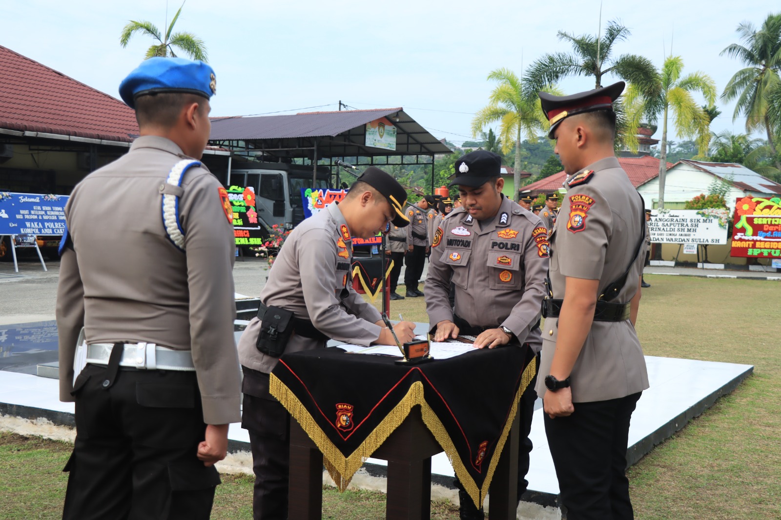 Peserta upacara terdiri dari Pejabat Utama Polres Kampar dan Para Kapolsek serta Para Perwira dan Perwakilan personel.