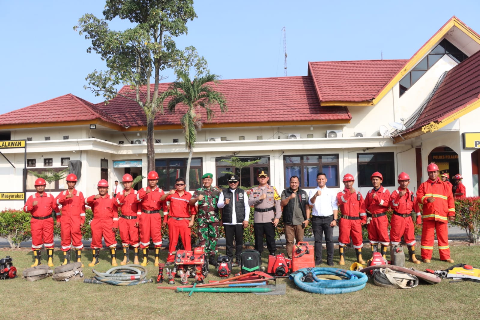 Kasatpol PP yang diwakili oleh Kabid Trantibum Yandi, Kepala Damkar Kabupaten Pelalawan yang diwakili oleh Kabid Pencegahan Sukriawan, Perwakilan Perusahaan PT. RAPP, PT. Musim Mas, PT. Adei , PT.Arara Abadi PT, Gandaerah Hendana,