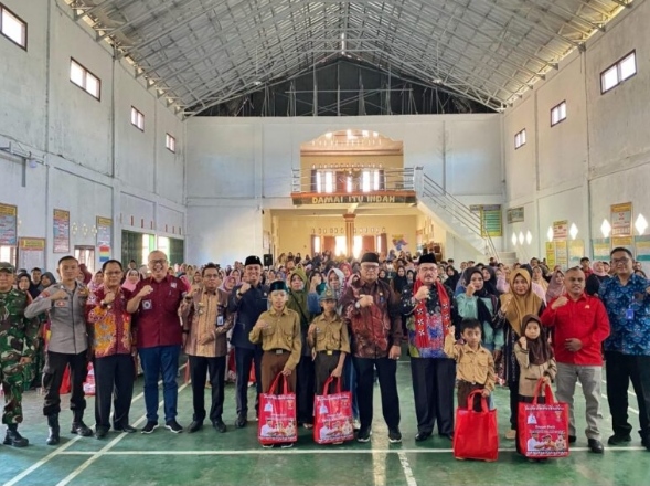 Penyerahan 2.576 seragam gratis untuk siswa Kecamatan Way Tenong, Sekincau dan Pagar Dewa ditandai dengan acara simbolis oleh Plh. Asisten I Bidang Pemerintahan dan Kesejahteraan Rakyat Drs. Ahmad Hikami yang berlangsung di Kantor Pekon Karang Agung Way Tenong dan SDN 1 Giham Sukamaju Sekincau, Jum’at 18 Oktober 2024.