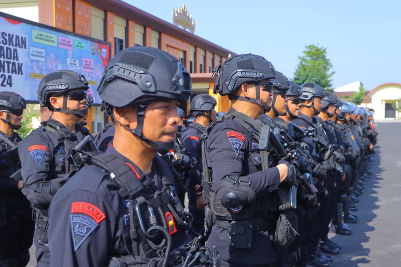 Polda Lampung melalui Direktorat Pengamanan Objek Vital (Pam-obvit) melaksanakan apel Operasi Mantap Praja 2024, di Mapolda Lampung, Sabtu (19/10/2024).