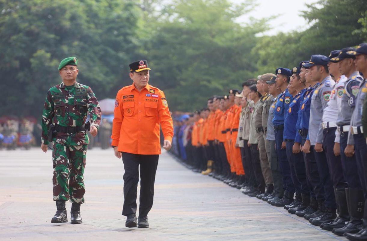 Pj Gubernur mengecek kesiapan personil satgas penanggulangan bencana.