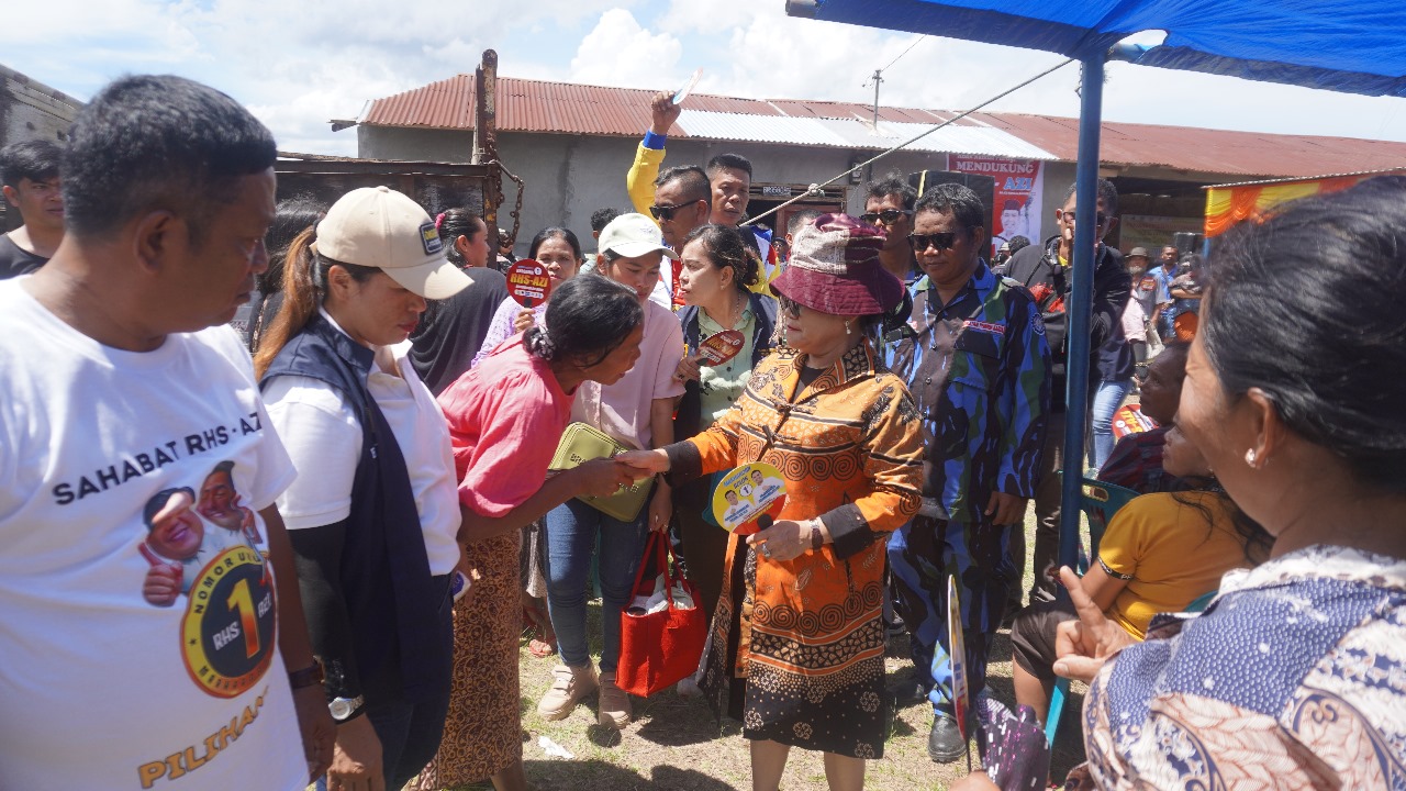 Demikian juga dengan seorang ibu bernama Jeni Simarmata menyebutkan alasan dukungannya kepada pasangan RHS-Azi, Ia menyebutkan belum pernah ada seorang istri Bupati seperti Ny Ratnawati Radiapoh yang dekat dengan masyarakat dan suka membantu.