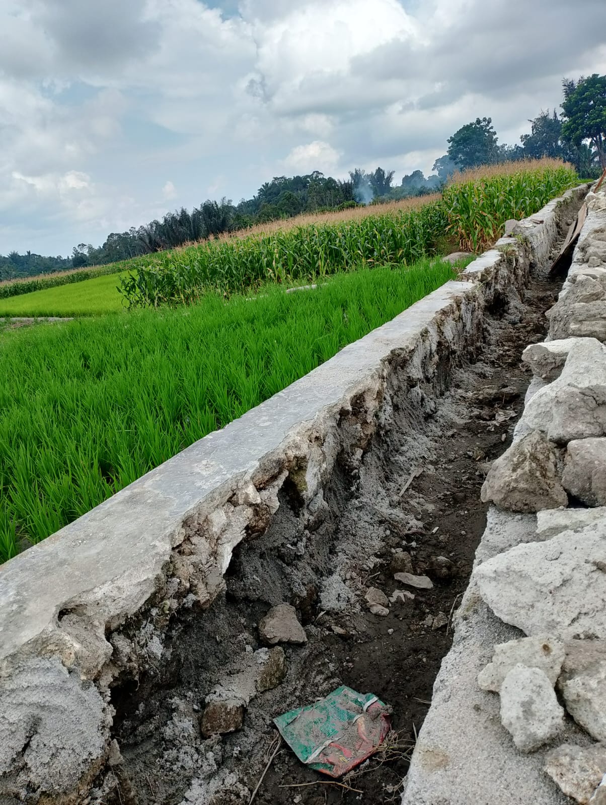 Sebab hasil pantoan ,dinding pasangan Parit irigasi sebelah, menggunakan tembok penahan tanah (TPT) lama dengan panjang kurang lebih 118 meter, TPT lama tersebut ,hanya di beri acian hingga tampak baru, sedangkan yang di maksud TPT volume 15 mater adalah dinding parit pasangan irigasi baru.