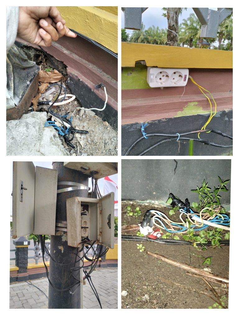 Pantauan dilokasi, banyaknya sambungan kabel yang semrawut,kabel yang mengelupas dan stop kontak yang sudah yang rusak masih terpasang, hal itu dapat berpotensi mengakibatkan korsleting dan bahaya Setrum jika sampai tersentuh pengunjung.