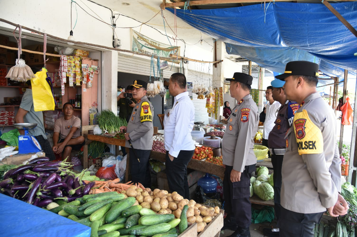 Jelang bulan Suci Ramadhan 1446 H, Kapolres Morowali Utara, AKBP Reza Khomeini, S.I.K. melaksanakan inspeksi mendadak (Sidak) di pasar Ponteoa Beteleme Kecamatan Lembo. Senin ( 24/2/2025).