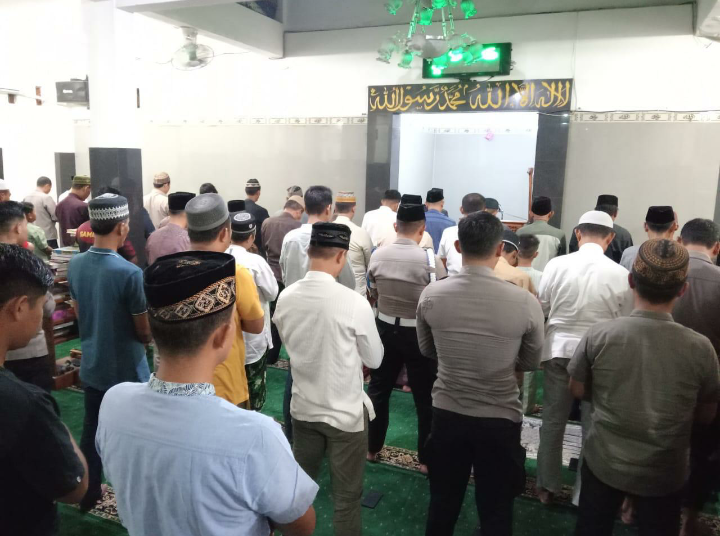 Polres Nganjuk menggelar Sholat Tarawih berjamaah di Masjid Al-Ikhlas, Sabtu (9/3/2025) malam.