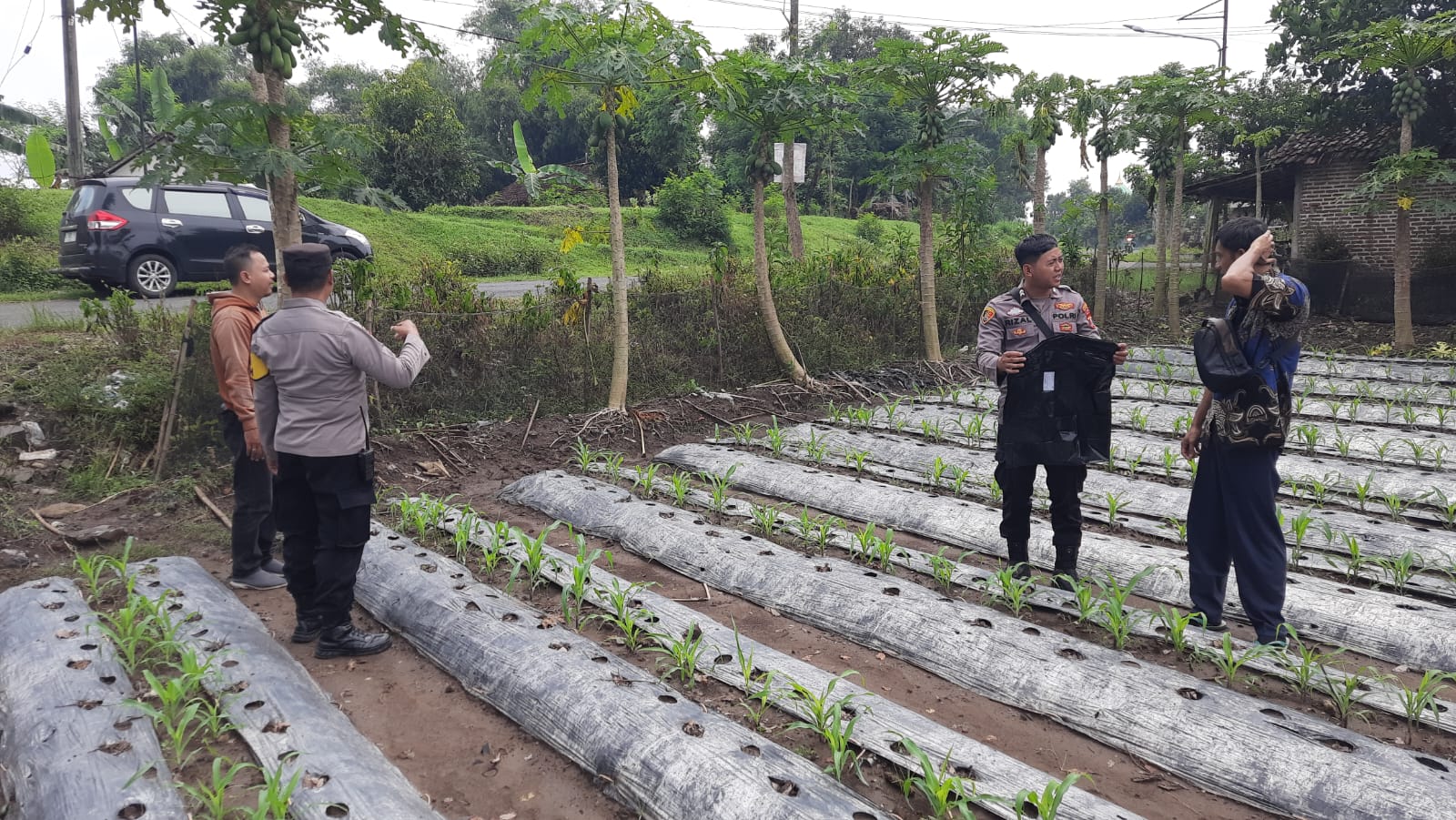 Kapolsek Patianrowo AKP Edy Suwanda, S.H., didampingi anggota Polsek Patianrowo Briptu Rizal Maulana, melakukan pemantauan terhadap tanaman jagung yang dikelola warga Desa Rowomarto.