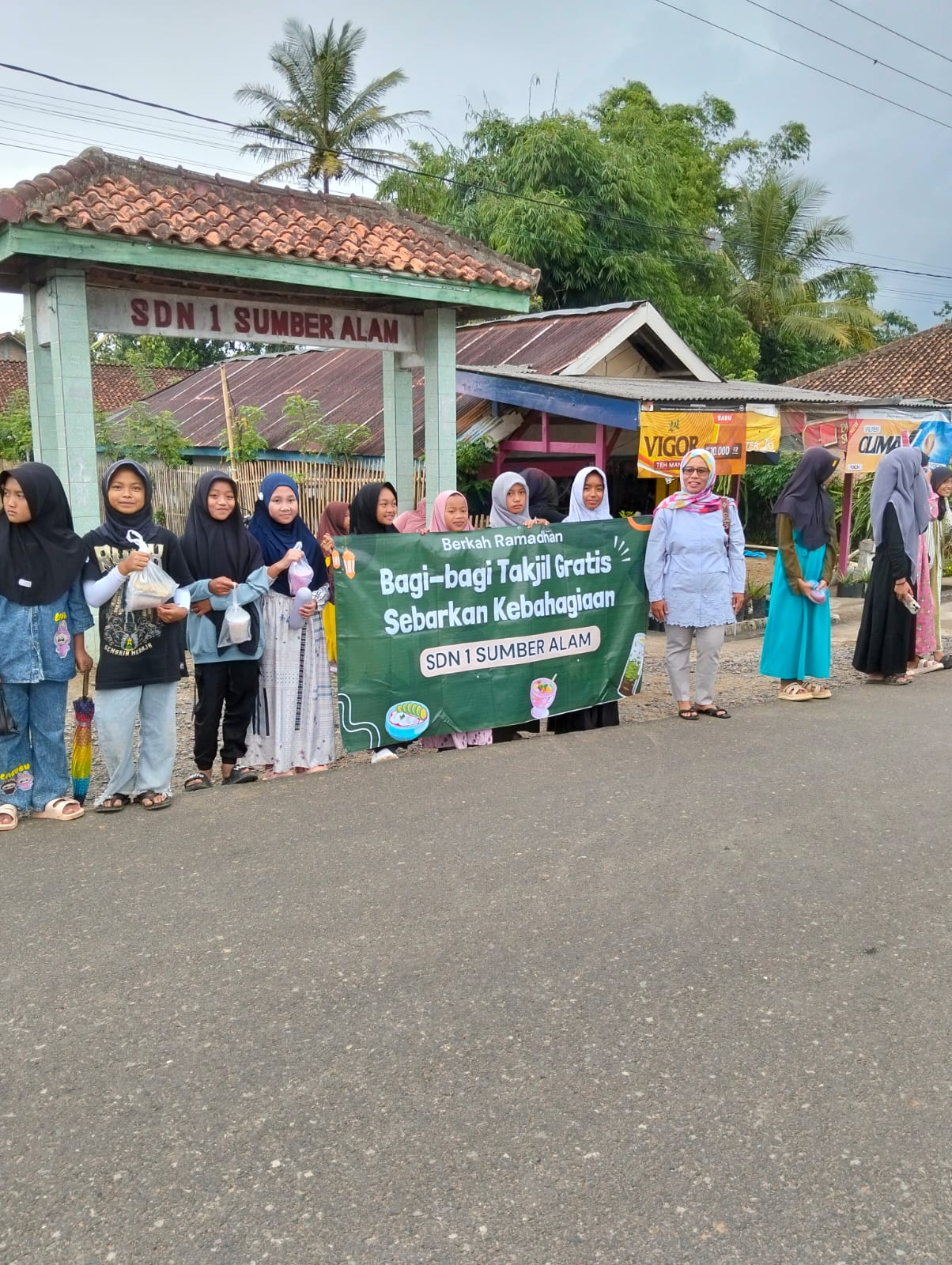 Aksi Berbagi Takjil Gratis di Bulan Ramadhan Yang Penuh Berkah Dilakukan Siswa Siswi SDN 1 Sumber Alam Dengan Sangat Antusias