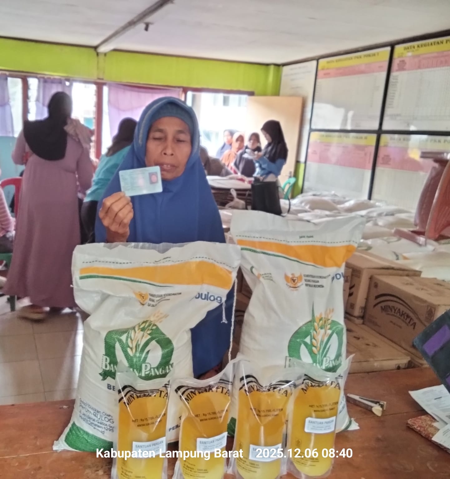 Sejak pukul 08.00 WIB, warga mulai memadati balai pekon dengan membawa identitas diri untuk proses verifikasi. Setelah data cocok, KPM langsung menerima paket bantuan yang telah disiapkan oleh aparatur pekon, (Sabtu 6 Desember 2025)