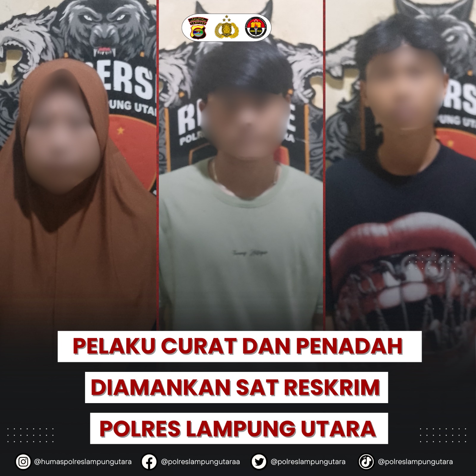 Tim Tekab 308 Sat Reskrim Polres Lampung Utara berhasil mengamankan dua orang pelaku curat dan satu orang sebagai penadah barang hasil kejahatan.