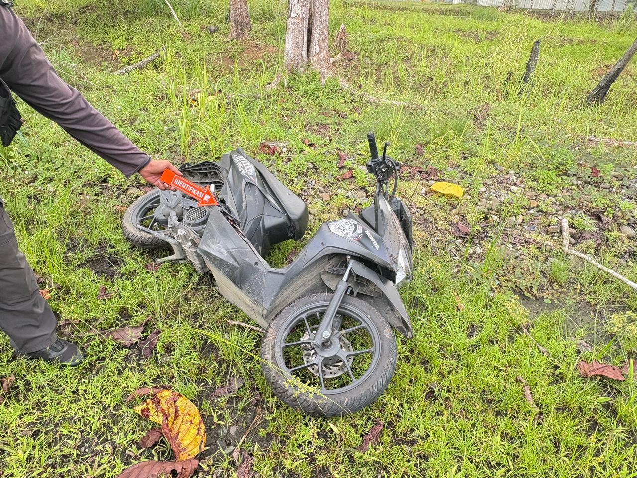 Barang bukti yang ditemukan di lokasi kejadian antara lain satu unit sepeda motor Honda Beat Street, sebuah handphone, sandal jepit, spion motor, serta perlengkapan pribadi milik korban. Seorang saksi juga telah dimintai keterangan awal untuk membantu proses penyelidikan lebih lanjut.
