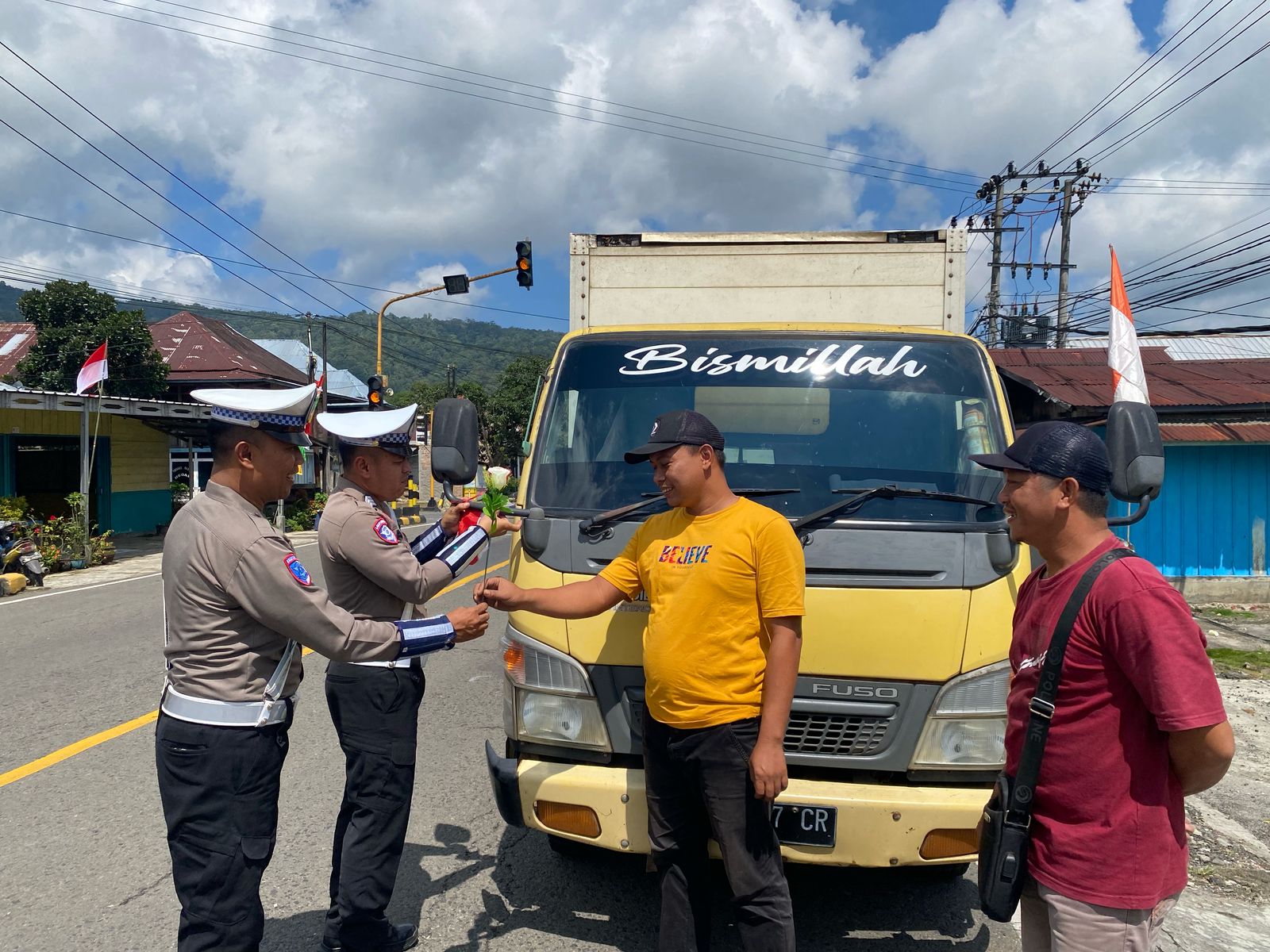 Selain membagikan dan memasang bendera, personel Satlantas juga memberikan edukasi dan imbauan kepada para pengguna jalan agar selalu tertib berlalu lintas dan mematuhi peraturan demi keselamatan bersama.