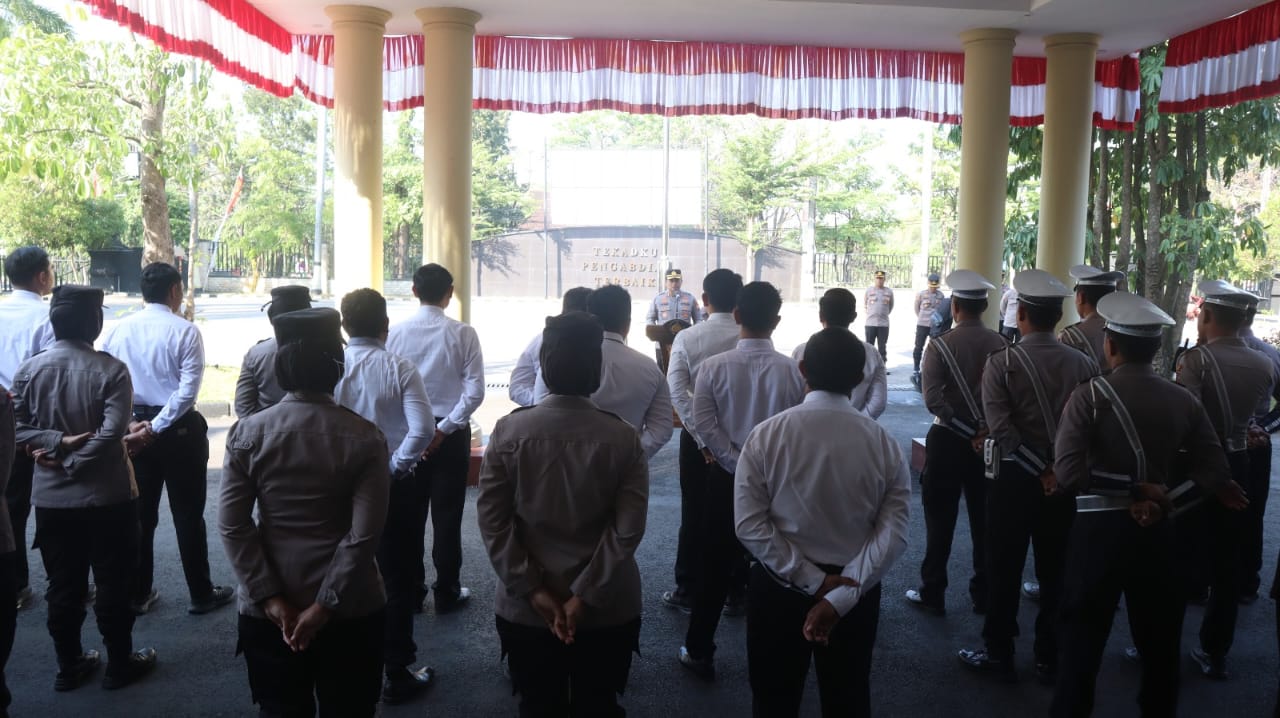 Kapolres Nganjuk AKBP Henri Noveri Santoso, S.H., S.I.K., M.M. memimpin apel jam pimpinan dengan menekankan kesiapsiagaan personel dalam menjaga mako, obyek vital, dan gedung-gedung yang menjadi simbol negara. Kapolres menegaskan tindakan tegas terukur akan dilakukan apabila terjadi penjarahan, perusakan, maupun penyerangan, sesuai perintah Presiden RI. Senin (1/9/2025).