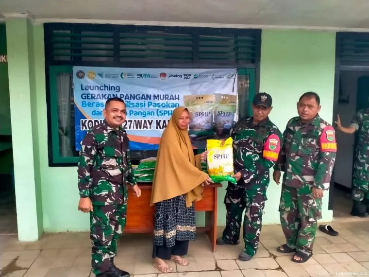 Dalam rangka mendukung program pemerintah terkait Stabilisasi Pasokan dan Harga Pangan (SPHP), Kodim 0427/Way Kanan bersama Koramil Kasui kembali menggelar Gerakan Pangan Murah dengan menyediakan beras Bulog SPHP bagi masyarakat Kecamatan Kasui, Kabupaten Way Kanan.