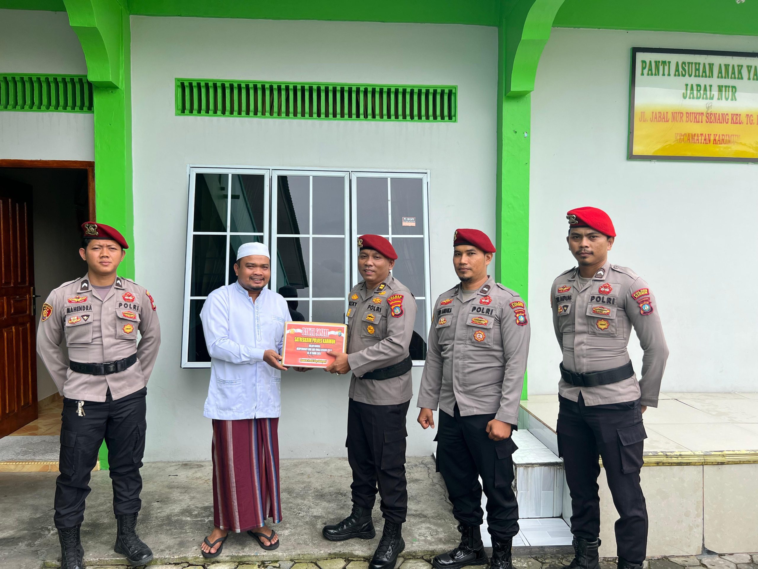 Karimun – Dalam rangka memperingati Hari Jadi Reserse Polri ke-78 dengan tema “Reserse Presisi Siap Melayani”, Satuan Reserse Kriminal Polres Karimun melaksanakan kegiatan penyaluran Bantuan Sosial (Bansos) kepada dua panti asuhan di wilayah Kabupaten Karimun. Senin (8/12/2025)