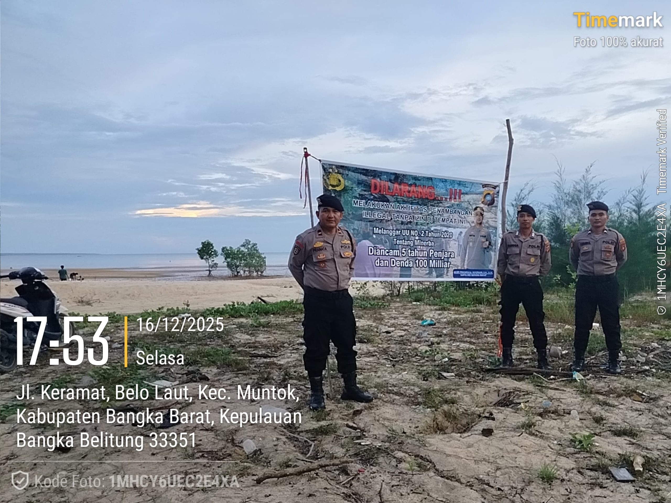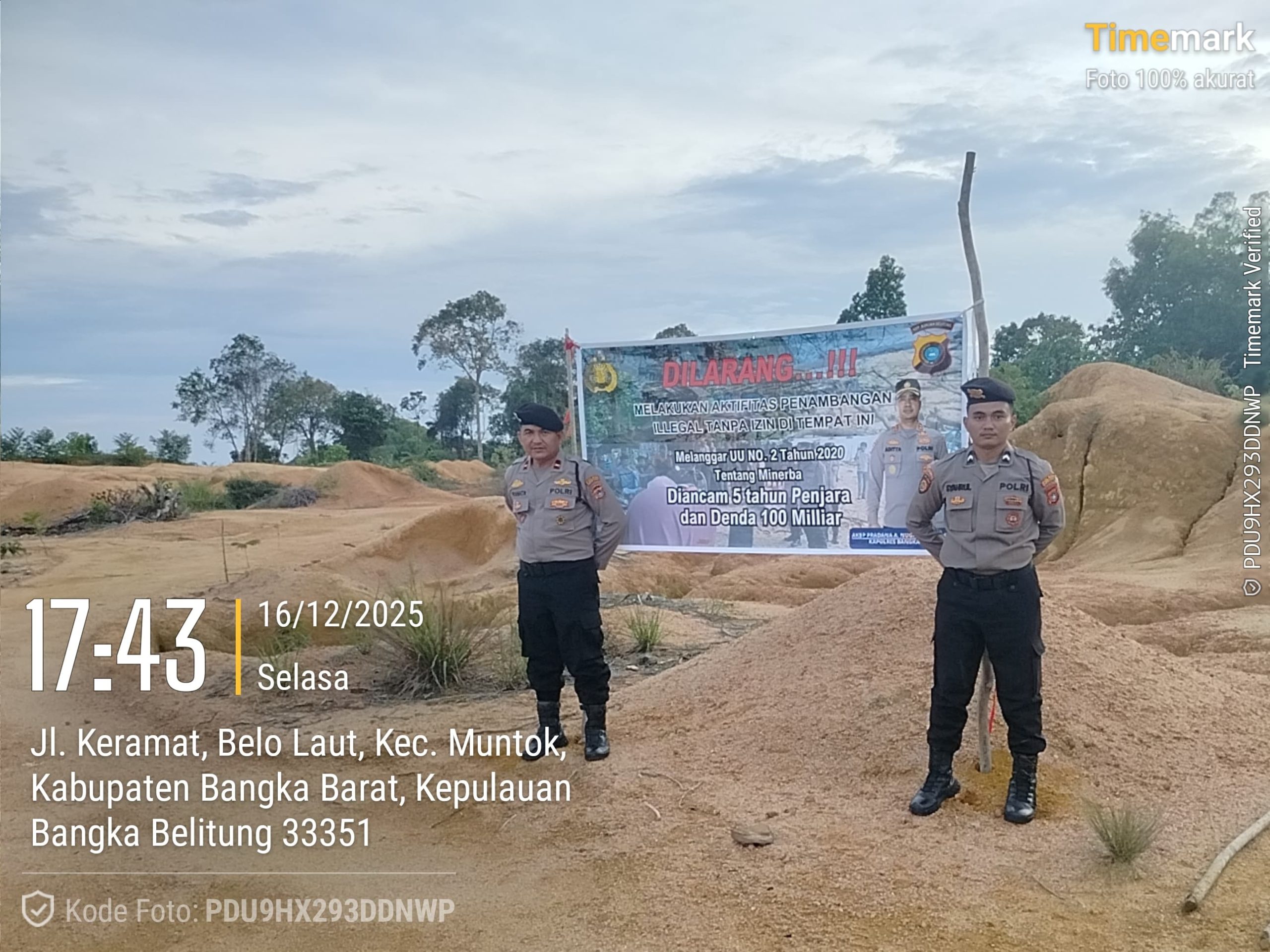 Dalam upaya mencegah kerusakan lingkungan serta menekan aktivitas penambangan ilegal, Satgas Preventif Polres Bangka Barat melaksanakan pemasangan spanduk imbauan dan larangan di sejumlah titik rawan tambang ilegal, Selasa (16/12/2025).