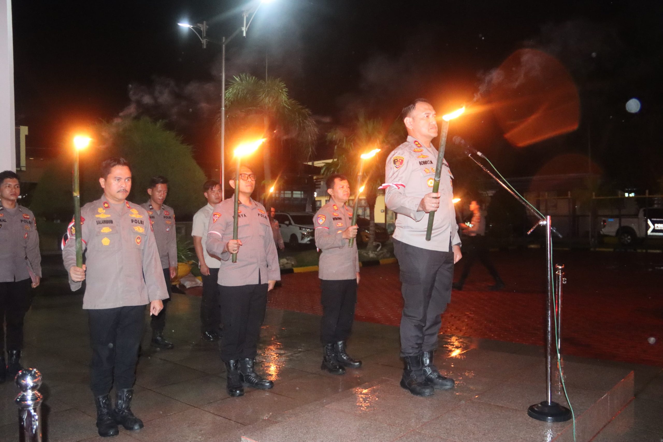 Rangkaian kegiatan diawali dengan pembukaan oleh MC, dilanjutkan doa bersama, pembacaan Renungan Ksatria Bhayangkara, pemasangan pita sebagai simbol Rantai Integritas Polri, penyalaan obor, serta penyalaan Api Ksatria Bhayangkara oleh Kapolres Karimun. Kegiatan kemudian dilanjutkan dengan pembacaan Ikrar Ksatria Bhayangkara dan ditutup dengan saling berjabat tangan sebagai simbol kebersamaan dan soliditas.