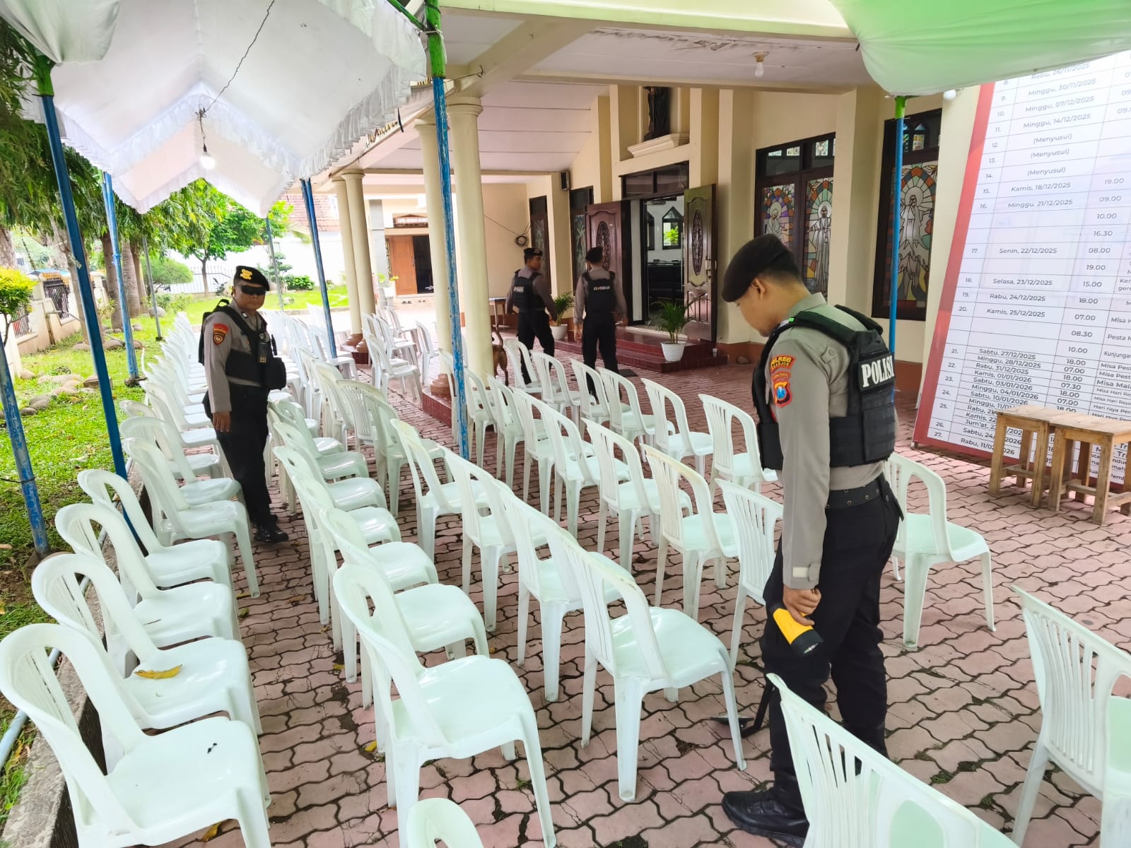 Pengamanan ini juga diharapkan dapat meminimalisir potensi ancaman, baik berupa benda berbahaya maupun gangguan lain yang dapat mengganggu jalannya ibadah.
