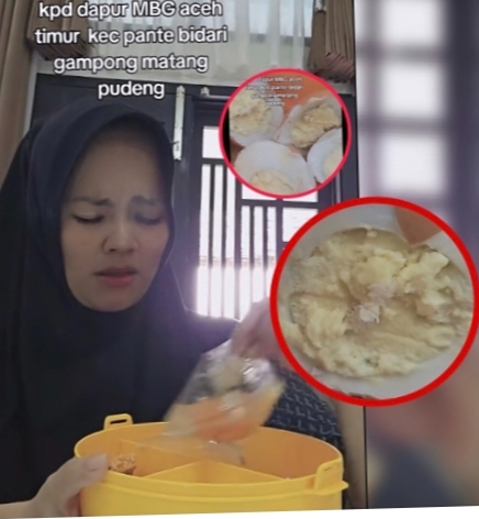 “Ini belatung di telur ya…dan telurnya sudah busuk dan ini semua makanannya sudah basi”Ujar dalam bahasa Aceh.Ia mempertanyakan esensi program MBG yang ia terima,apakah itu bergizi…?apakah menurut kalian ini layak untuk di konsumsi…?Coba pikirkan,apakah layak makanan seperti ini di konsumsi….? tanya nya.